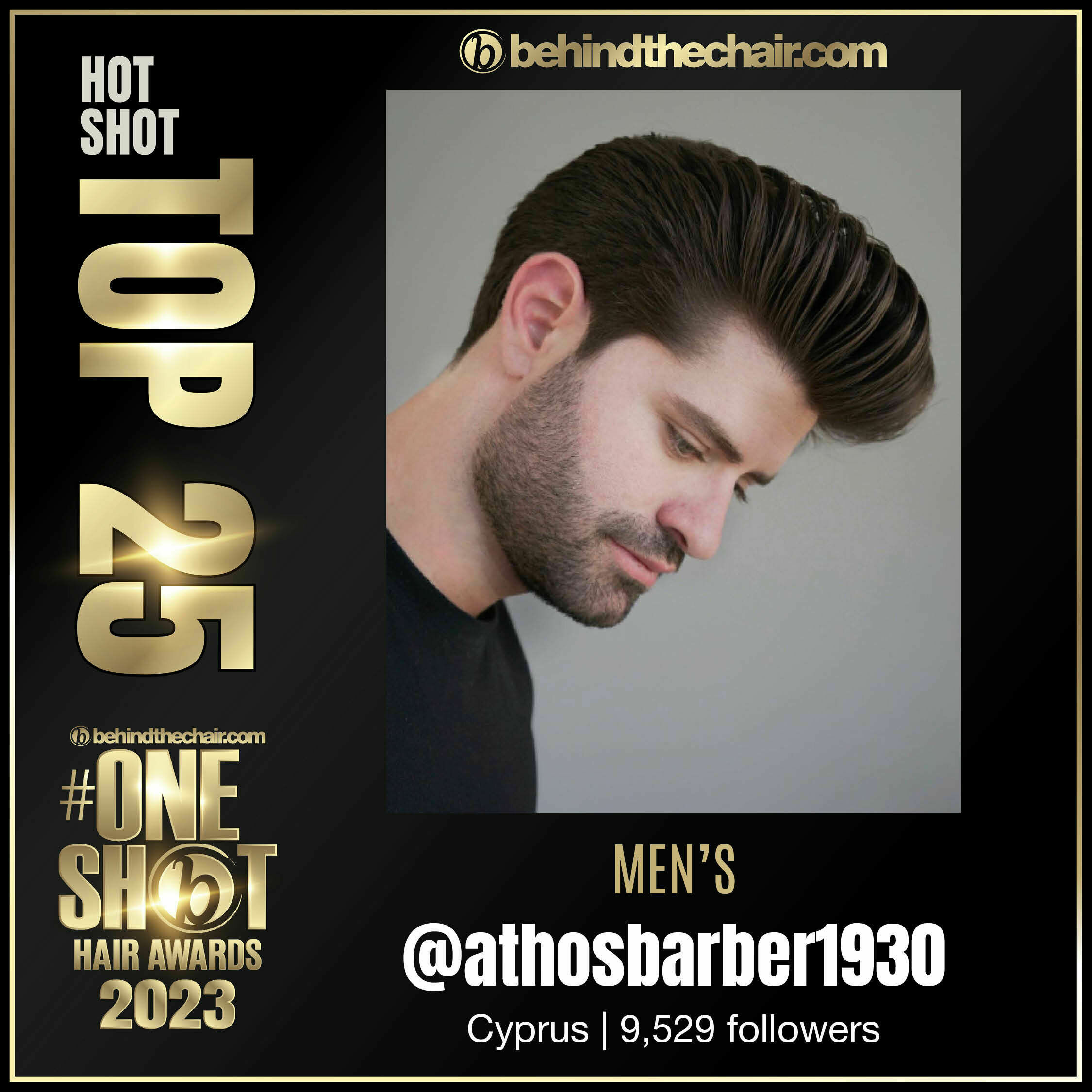 TOP 25 in men's category in 2022 , 2023 and 2024.The Biggest Hair Award Show On The planet. Over 350k entries from 100 countries around the word. This achievement is something only a few thousand hairdressers and barbers in the world have ever achieved.